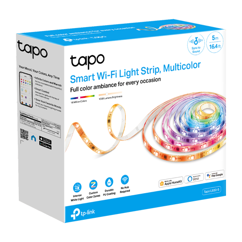 Banda LED Wi-Fi inteligenta de la TP-LINK Tapo avand urmatoarele caracteristici cheie: