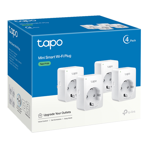 Pachet de 4 prize inteligente Wi-Fi de la TP-Link Tapo avand urmatoarele caracteristici cheie: