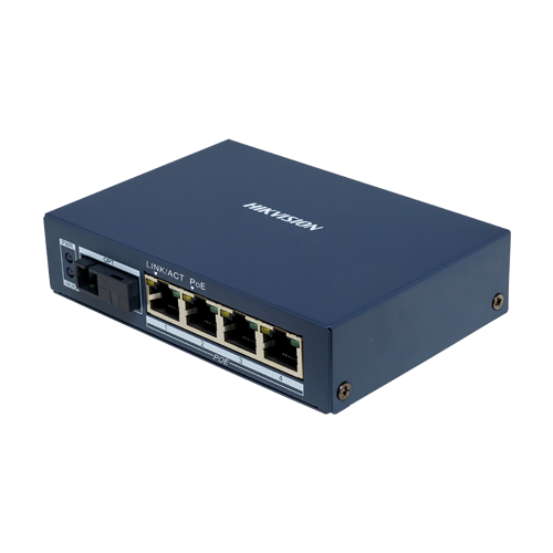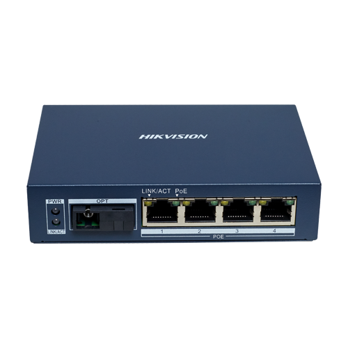 DS-3D504TP-A este un mediaconvertor Gigabit single-mode si single-fiber dezvoltat de Hikvision. Acesta ofera 4 porturi PoE 10/100/1000 Mbps auto-adaptive si un port SC de fibra optica 1000 Mbps si asigura o transmisie de date rapida, stabila si fara pierderi pe o distanta de pana la 20 km.