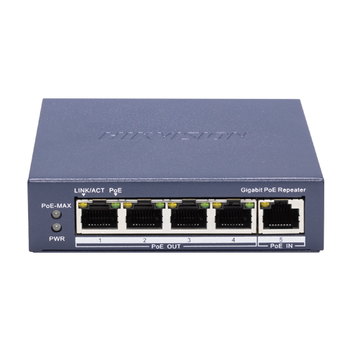 Switch-repeater Gigabit 4 x RJ45 PoE Out af/at, 1 x RJ45 PoE In af/at/bt, Management - HIKVISION DS-3E0505P-E-R