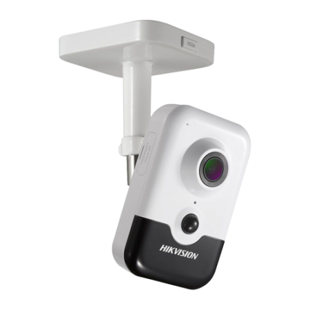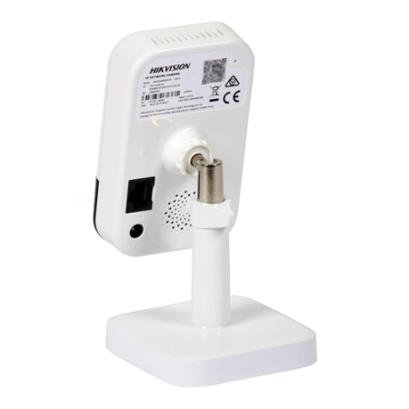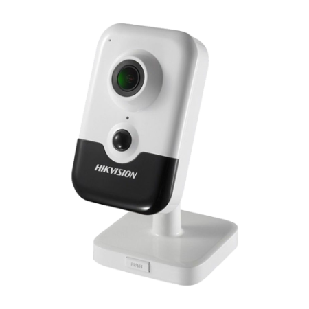 Camera Cube IP WI-FI de la HIKVISION, rezolutie HD 2MP (1920x1080), echipata cu lentila de 2.8mm unghi de vizualizare de 114°, microfon si speaker integrat ce ce permite comunicare audio bidirectionala, SD-card max. 128GB (neinclus), distanta IR pe timp de noapte pana la 10M, PIR pentru detectie miscare pana la 10m.