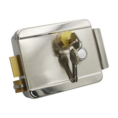 Yala metalica cu montaj stanga / dreapta ce ofera o siguranta sporita. Poate fi deblocata electric sau cu cheie din exterior / buton din interior (blocabil cu cheie).